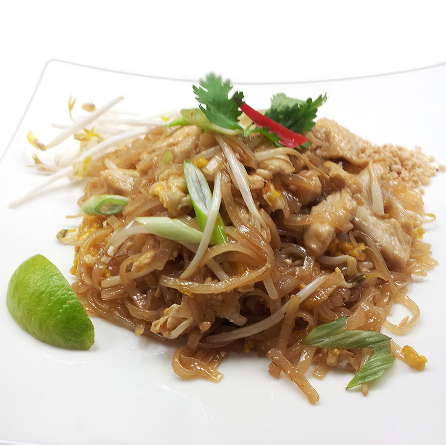Classic tamarind noodle stir-fry with egg, bean sprouts, peanuts, lime and your choice of protein.